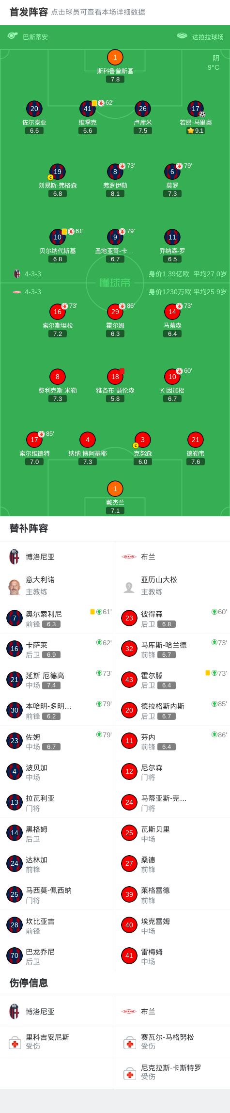 博洛尼亚1-0布兰,若昂-马里奥助球队取胜